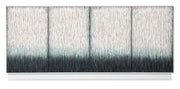 With the allure of an impressionistic painting, the Mediterranean Entertainment Credenza has four white and blue ombre-colored textured door fronts. The interior and case of the credenza is in a soft white. There are two adjustable shelves behind each pair of doors and a 3-plug outlet behind the left pair of doors in the upper right corner. Crafted of Pine and Maple Veneers, the credenza accommodates up to a 75-inch TV.