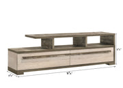 Bring modern charm and functionality to your living room with this sleek and versatile media stand. Its two-tone wood finish adds a contemporary edge while maintaining a warm, natural feel, making it a perfect fit for any decor style. The open shelving provides ample space for media devices and decorative accents, while the spacious drawers offer concealed storage to keep your space clutter-free. Designed with both style and practicality in mind, this stand creates a stunning focal point for your entertainment setup, combining clean lines and thoughtful design for the ultimate blend of form and function.