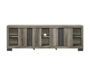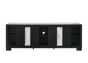 This sleek and modern entertainment unit is the epitome of contemporary elegance and functional design. Boasting a bold finish with striking marble-like accents, this piece serves as a captivating centerpiece for any living space. Its generous surface perfectly accommodates large screen displays, while the ample storage space including open shelving and discreet cabinets provides a neat solution for all your multimedia devices.