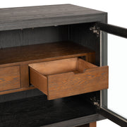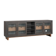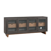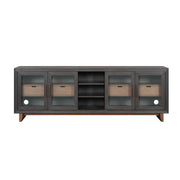 Add effortless style and architectural appeal to your living room with the Waterfall entertainment console. This striking piece features a timeless silhouette defined by clean lines and simple geometric shapes. Meticulously crafted from poplar and rubberwood solids, oak veneers, and a deep ebony finish, this piece is built to be everlasting. The spacious 76” inch top, four storage cabinets with drawers provide ample space for all your entertainment essentials. The graceful namesake waterfall edges give this entertainment console true elegance.