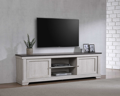 This entertainment console blends rustic charm with modern functionality, perfect for organizing your media setup in style. Its light, weathered wo...