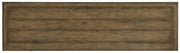 With a laid-back tropical vibe, the Sundance Media Console has three rattan-front doors with soft-close hinges and is finished in Cliffside, a rich brown with light burnishing on the edges. Crafted of Pecan Veneers and Rattan with a Solid Wood edge top, the console has one vented adjustable shelf behind the left pair of doors and one vented adjustable shelf behind the right door, a ventilated back panel and one 3-plug electrical outlet. Accommodates a 65-inch flat screen TV.