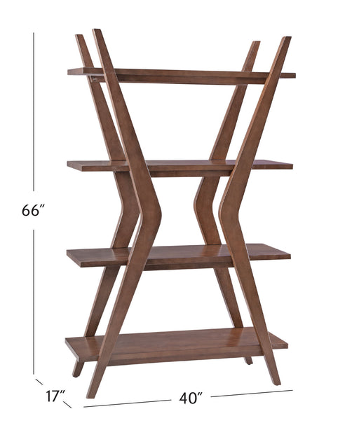 The Stratton Brown Etagere brings a modern touch to your space with its warm walnut finish and solid rubberwood construction. Featuring four spacio...