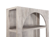 The Bali Etagere blends coastal modern farmhouse design with timeless appeal. Crafted from solid mango in a soothing white-wash finish, this piece features arched open front and end panels with v-grooves for a distinctive touch.