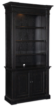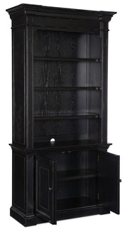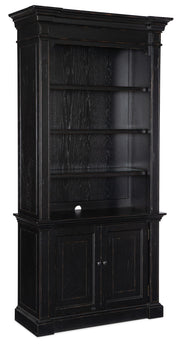Casual yet refined and stylish, the Bristowe Bookcase sets a professional and inviting tone for any work-from-home or living space. Crafted of Pecan Veneers in a Tuxedo black paint finish with touches of warm brown, the bookcase has two doors with one adjustable shelf behind and 3 adjustable wood shelves. Special features include anti-tip hardware and a puck light at the top with a touch-switch on the right pilaster.