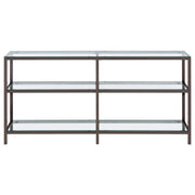 Stylize a modern space with a fashionable and functional piece. This gorgeous bookcase brings together the unmistakable beauty of glass and metal. With a black nickel finished steel frame and clear tempered glass shelving, it adds an elegant simplicity. Display books, decor, and photographs on four shelves and a rectangular surface. This exquisite bookcase adds a gentle, soft, and inspiring look to a contemporary room.