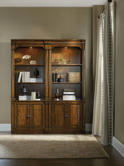 A stately icon of English Country style inspired by manor homes, the Tynecastle Bunching Bookcase can be used alone or in pairs as a focal-point piece with generous storage. The warm chestnut-colored finish reveals the rich character of figured Alder veneers. One adjustable wood-framed glass shelf and one adjustable wood shelf, along with 2 doors with one adjustable shelf behind. One light with 3-intensity touch switch.