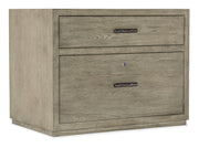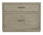 The Linville Falls File pairs the rustic weathered smoked gray Mink finish with an organic grain pattern and clean modern lines. Crafted of Oak Veneers, the File is accented with textured metal bar pulls in an antique pewter finish and features a top utility drawer and a lower locking file drawer with pendaflex filing system. Finished on the back so it can be floated in a room, it can be used alone or with coordinating modular pieces including desks, corner desks, a lateral file and etagere.