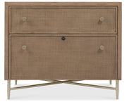 The Sonnet Lateral File offers a stylistically versatile, functional piece that blends natural textures with a refined minimalist silhouette. Crafted of Quartered and Cathedral-Cut White Oak Veneers in a light earthen finish with complementary woven cane drawer fronts, the file has tapered metal legs and stretchers and satin-finished champagne-colored knobs. The top drawer is a utility drawer and the bottom drawer is a locking file drawer with letter/legal filing option.