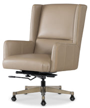 The Primrose Executive Swivel Tilt Chair blends modern transitional design with functional comfort for home office settings. Finished in glazed gold with black nickel casters, this chair is upholstered in top-grain leather that boasts a two-tone finish with a soft, silky texture. Its wingback design, combined with high-density foam, ensures ergonomic support and luxury.