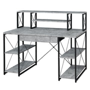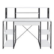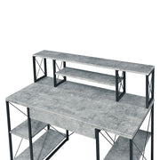 Specifically designed for all purpose, this Amiel Music Recording Studio Desk is suitable for study room, bedroom, living room or home office. Expertly crafted with selected veneers, manufactured wood, and metal tube, this piece has open shelving, hutch and drawer to provide ample space to store office necessities and documents. Available in faux concrete, black and white finish, you can choose the one that match your taste the best.