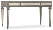 We’re sure this is the most glamorous work-from-home desk solution you’ll find anywhere. With a refined silhouette and slender shaped legs, the Rustic Glam Leg Desk is crafted of Quartered White Oak Veneers and glass with shimmery eglomise accents. The center drop-front drawer accommodates a keyboard, and there are two utility drawers with two dividers in each. One pencil tray and mouse pad can be used in either side drawer. Antique brass knob hardware.