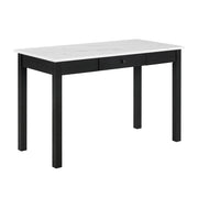 Upgrade your workspace with this sleek and sophisticated desk, designed to bring both style and functionality to your home or office. Featuring a stunning faux-marble top, it adds a touch of modern elegance while providing a durable and easy-to-clean surface for all your work essentials. The sturdy black frame offers a bold contrast, creating a contemporary look that blends seamlessly with any décor. A built-in storage drawer keeps your workspace organized and clutter-free, making it perfect for productivity. Whether you're working, studying, or creating, this desk delivers the perfect balance of practicality and refined design.