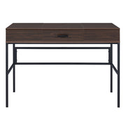The beautiful contrast between warm wooden tone with cold metal elements delivers a bold industrial design. The writing desk has a wooden top for natural texture, softening the hard look of dark metal frame. The unique hinged top flips up to reveal two spacious interior storage compartments, which help you hide odds and ends to maintain a clean workspace. There is also a storage drawer for storing your stationery, as well as providing easy access and built-in USB ports and built-In outlets keep your devices fully charged.