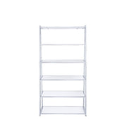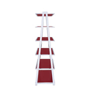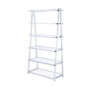Coleen 6-Tier leaning bookcase is attractive and free standing and can be used as a bookshelf or display shelf. There are 6 total wooden shelves of differing sizes with an open back panel and a metal frame with a chrome finish. This bookshelf is the perfect addition to any room. Some Assembly Required.