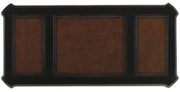Telluride's black paint finish with heavy reddish brown rub-through, carved leather panels and nail head trim give this collection a rich masculine look.