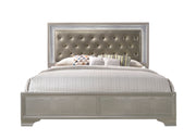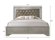 Step into a realm of sophistication and comfort with this stunning bedroom collection. Each piece showcases an exquisite blend of traditional charm and contemporary flair, making a bold statement with its textured surfaces and elegant finish. The bed, a centerpiece of luxury, features a sumptuous, tufted headboard with integrated lighting that invites a touch of opulence to your restful retreat. Coordinating storage solutions, including a dresser, chest, and nightstand, offer ample space with their gracefully designed drawers, accented with shimmering hardware that complements the set’s chic aesthetic.