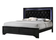 Step into a realm of sophistication and comfort with this stunning bedroom collection. Each piece showcases an exquisite blend of traditional charm and contemporary flair, making a bold statement with its textured surfaces and rich finish. The bed, a centerpiece of luxury, features a sumptuous, tufted headboard with integrated lighting that invites a touch of opulence to your restful retreat. Coordinating storage solutions, including a dresser, chest, and nightstand, offer ample space with their gracefully designed drawers, accented with shimmering hardware that complements the set’s chic aesthetic.