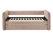 This stylish and multifunctional daybed is the epitome of modern versatility and chic design. Its clean lines and on-trend upholstery make it a seamless addition to any living space or home office. The daybed features an innovative pull-out trundle that effortlessly transitions the piece from a cozy lounge to a comfortable sleeping solution for guests.