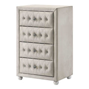 Enter the sophisticated realm of the Reggie bedroom collection. Wrapped in elegant fabric, this set features a strikingly tufted headboard and matching drawer fronts, exuding timeless luxury. The soft, padded surfaces offer both comfort and style, creating a serene atmosphere for rest and relaxation. With its blend of classic and contemporary elements, the Reggie collection transforms your bedroom into a refined retreat.
