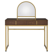 Coleen - 50" Vanity Desk With Mirror & Jewelry Tray - Walnut & Gold