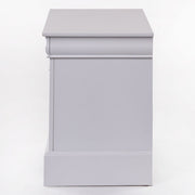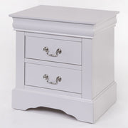 It has two drawers with center metal glide and brushed nickel metal handle. Offers you plentiful storage with spacious drawers