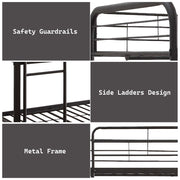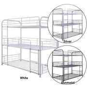 The ultimate space saver for small rooms, the Cairo triple metal bunk bed will be the best additional for your sweet home. Stacking three beds securely, the easy access guardrails keep your kids snug and secure, while the two built-in ladders offer easy access. This bunk bed is available in both twin and full size in a smooth sandy black finish.