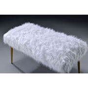 Bagley II - 20" Bench - White Faux Fur & Gold