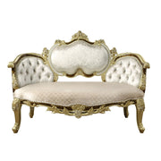 Desiderius - Bench - Beige Fabric, Antique Gold & Hand Paint Brown