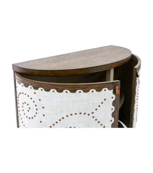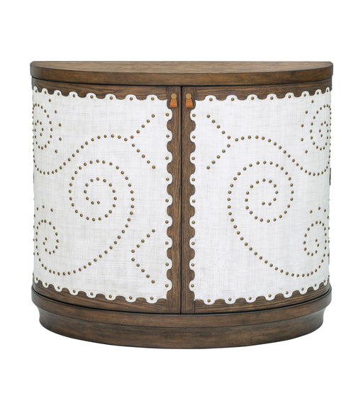The Serrano Accent Cabinet blends rustic charm with modern elegance in its unique design. Crafted with a demilune-shaped frame of lightly distresse...