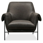This casual couture chair will become a functional and fashionable focal point in just the right spot. The combination of a sleek and slouchy leather cover with baseball stitching and a slender metal frame makes this a special piece.