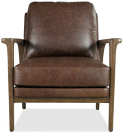 Elevate your seating with the Ashland Chair in leather, a stationary club chair featuring exposed wood arms and a plush pillow back. Perfect for relaxed elegance, this chair is constructed with kiln-dried wood and high-resilience foam for enduring comfort. A timeless choice for transitional living spaces or boutique-style interiors.