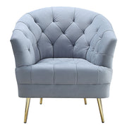 The Bayram living room collection is a perfect combination of contemporary and classic. With a modern curved silhouette and classic details such as diamond button tufting to create this glamourous set. The light gray velvet upholstery paired with the metal gold legs makes this collection stand out. The full foam seats provide hours of comfort, perfect for hosting game nights.