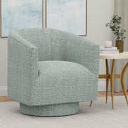 Get the chic, yet contemporary feel you’re looking for with the Brylee accent chair. The swivel base is stylishly upholstered to match the rest of the chair, while the barrel-shaped back invites you in. A well-tailored line of welting around the chair adds definition and a fashionable touch. A durable sinuous spring frame under the foam cushion builds a comfortable seat you won’t want to leave. Whether choosing a color to be the center of the attention in your space, or to match with your existing decor, the Brylee chair will add an easy update to your space.