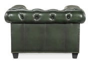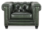 Grand in style and timeless in appeal, the Charleston Tufted Chair is a showstopper with a plush button-tufted back and arms in the classic Chesterfield style. Featuring pewter nailhead trim, the Charleston has wood feet with a black finish and is upholstered in the Sarzana Portal finished, wipe-off top grain leather.