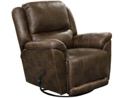 COLE is a Chaise Swivel Glider recliner in a thick polyester fabric with decorative luggage stitiching.