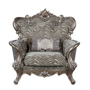 An assortment of materials and patterned hues highlight this elegant, traditional Elozzol collection. Plush and luxurious with rich upholstery, it offers an exquisitely comfortable space to lounge and relax after a long day. This set flaunts a rich, ornate frame in a champagne finish featuring intricate, detail-carved wooden trim and claw feet for a tasteful and timeless look. With its stylish, patterned pillows and thick, plush cushions, this magnificent sofa set gives any living room an opulent and inviting atmosphere. Turn your living room or family room into the relaxed centerpiece of your home with the Elozzol collection.