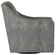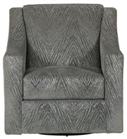The Lamar swivel accent chair is great as a stand alone accent or in conjunction with the Lamar sofa, loveseat, chair and cocktail ottoman. The seating is constructed with 50+ individually pocketed coils encased in foam, topped with a layer of cool gel infused memory foam and wrapped in a layer of synthetic fiber. This creates a comfortable and supportive seat that will last much longer than traditional foam only seating. The 360 degree swivel base allows you to easily rotate the seat to always be a part of the conversation.