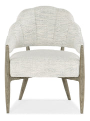 Inspired by the breathtaking three-tiered Linville Falls, the most famous waterfall in the Blue Ridge Mountains, the Bynum Bluff Accent Chair has a channeled back that creates a scalloped shape on the upholstered arms. The plush seat and back are upholstered in the neutral Merino Cotton, while the wood frame is finished in the soft smoked gray Mink color.