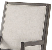 Entertain your family and friends with the bold contemporary styling of Mila. A fashion-forward washed grey finish over hardwood solids combines with bone linen fabric to make a stylish and comfortable Arm Chair. The back of the chair is wood-framed to make it as impressive from the back as from the front and also adds structural support to the chair.