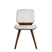 KD, Armless Chair (High Backrest) • NO Storage (Open Base) • Stationary Seat: Standard Dining • Padded Seat & Back with Wood Panel •• CONSTRUCTION •• Seat & Backrest: White PU Finish, Outside Wood Panel: Walntut Finish • Wood Splayed Leg: Walnut Finish (NO Casters)