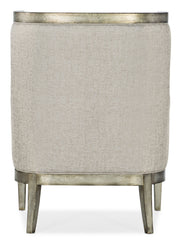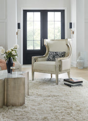 She's a modern gal: up to date and sumptuously scaled. The Sanctuary Debutant Wing Chair has a classic pedigree in historic traditional and has been streamlined and modernized. A true style statement, the Debutant shows off three different performance fabrics: The inside back and seat is in Celestial Ice, and the outside back is in Sequins Pearl, while the pillow is in a zebra print for extra fun.