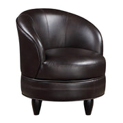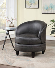 Experience the perfect blend of style and functionality with Sophia, the compact swivel barrel chair designed to accentuate any environment. Upholstered in a rich cover, this chair exudes a sleek and contemporary allure, adding a touch of sophistication to any space. Sophia's 360-degree swivel feature allows you to effortlessly turn and engage in conversation or enjoy a full view of your surroundings. Its transitional style seamlessly blends with various decor themes, making it a versatile choice for any room. With its compact design, Sophia is ideal for smaller spaces without compromising on comfort or style. Sink into the plush leatherette upholstery and indulge in moments of relaxation and tranquility.