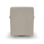 The perfect elegant piece to accentuate your home, the picturesque petite roll arms of the Stella swivel chair invite you in. Take a seat atop a removable and reversible cushion that is supported by our patented Blue Steel Spring system – backed by our lifetime guarantee. Handcrafted with a durable frame and upholstered with careful detail, Stella is designed to last. The tight back gives this quaint chair a modern flair, while the swivel base gives you freedom to move while lounging. Elevate your home with the chic style of Stella.