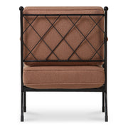 Gillian Segal for Moe's The Vecchia accent chair draws its inspiration from the revered ambiance of Italy's Posta Vecchia hotel, blending timelessness with understated elegance. Crafted with a hammered metal finish, its iron frame showcases a unique lattice detail on the back, crowned with a decorative finial, paying homage to historic Italian craftsmanship. The chair's upholstered seat, complemented by refined piping detail, speaks to comfort and an easy-to-maintain aesthetic grace.