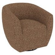 Smooth movement meets sculptural comfort in the Vega swivel chair. This barrel-back design makes a subtle statement in textured, multi-toned fabric—boucle-inspired and artisan-woven, with threads layered into warm spice or slate yarns. Built for comfort, Vega features a sinuous spring seat, supportive foam cushion, and 360-degree swivel base in a compact footprint that works anywhere from reading corners to bedroom nooks. Whether paired with modern lines or vintage finds, Vega brings adaptable style with a cozy, collected feel.