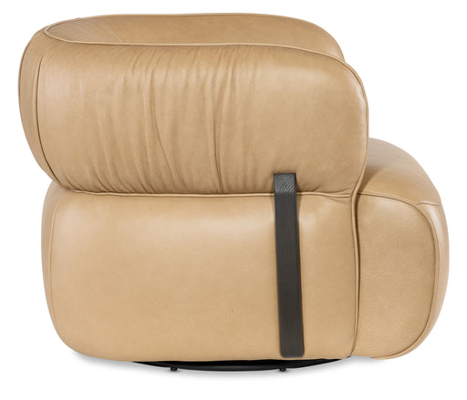 Experience the Henderson Power Swivel Glider Recliner in semi-aniline leather by Hooker Upholstery, a masterpiece of comfort and style. Featuring p...