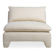 The Estelle chaise seamlessly blends vintage inspiration with a contemporary approach, pairing its armless silhouette with fully upholstered padded legs. A sink-into seat brings the plush comfort of Dacron fiber and feather-fill, while the linen blend fabric adds a relaxed, lived-in look.