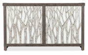 Bring the beauty of nature into your home with the Aspen Grove Door Chest, featuring a raised tree-and-branch motif on a contrasting white background on the door fronts. The chest is crafted of Oak Veneers and Resin with a dark wood finish that contrasts with the branch motif on the door fronts. The two doors have soft-close hinges and magnetic catches. There’s one adjustable shelf behind each door. The interior finish matches the exterior.