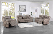 Introducing the ultimate relaxation experience - the Abilene manual reclining set, the new epitome of comfort and style. Crafted with high-quality materials, this set is built to last. A Tan leatherette cover is durable and long-lasting with overstuffed arms and headrests that provide the comfort you crave. Dimpled back and shaped seats offer superior lumbar support, ensuring you can unwind in complete comfort. Contrasting dark olive side panel accents add a touch of elegance and sophistication, making it a perfect addition to any living room or entertainment space. An easy to operate reclining mechanism gives you a smooth, effortless motion that lets you adjust your position to your preferred level of comfort. Whether you're watching a movie, reading a book, or simply relaxing, the Abilene manual reclining set provides the ultimate relaxation experience and a perfect addition to any living room or entertainment space.